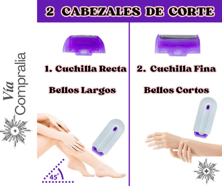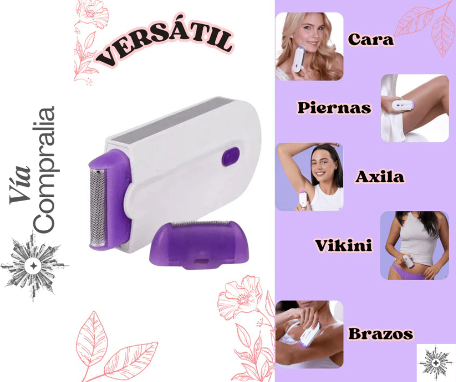 Zonas de uso: Piernas 🦵, brazos 💪, axilas 🏋️♀️, rostro 😊 y área del bikini 👙